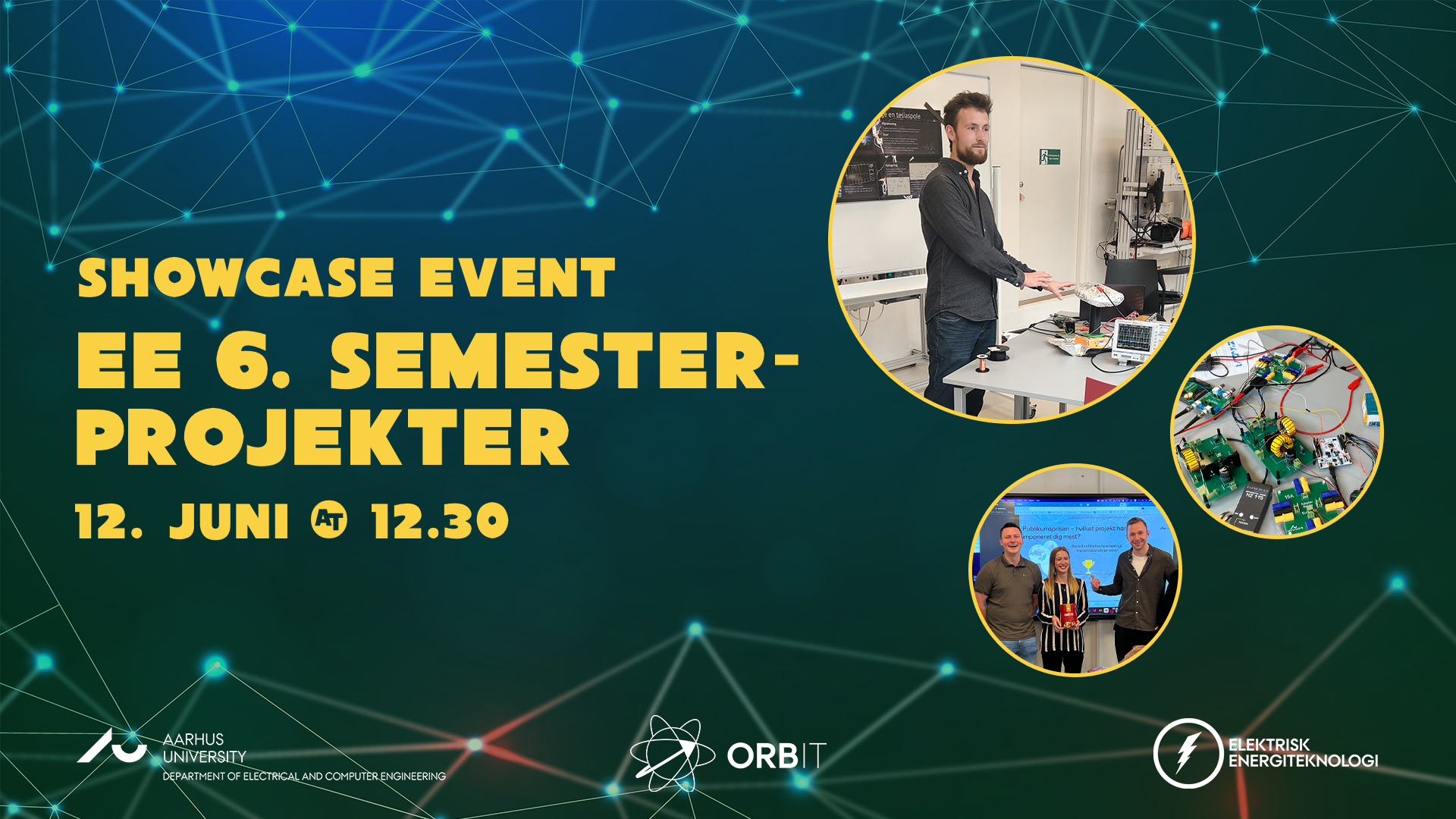 Projektgrupperne laver først en præsentation af deres projekter. Herefter vil grupperne stå ved hver deres station, hvor du kan komme og spørge ind til deres projekter og blive inspireret til fremtidige projekter – måske endda et 6. semesterprojekt. Du får også mulighed for at tale uformelt med EE-underviserne og forhøre dig om dine muligheder for at lave et 6. semesterprojekt.